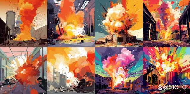 第二个prompt是“油漆厂爆炸,矢量艺术”: