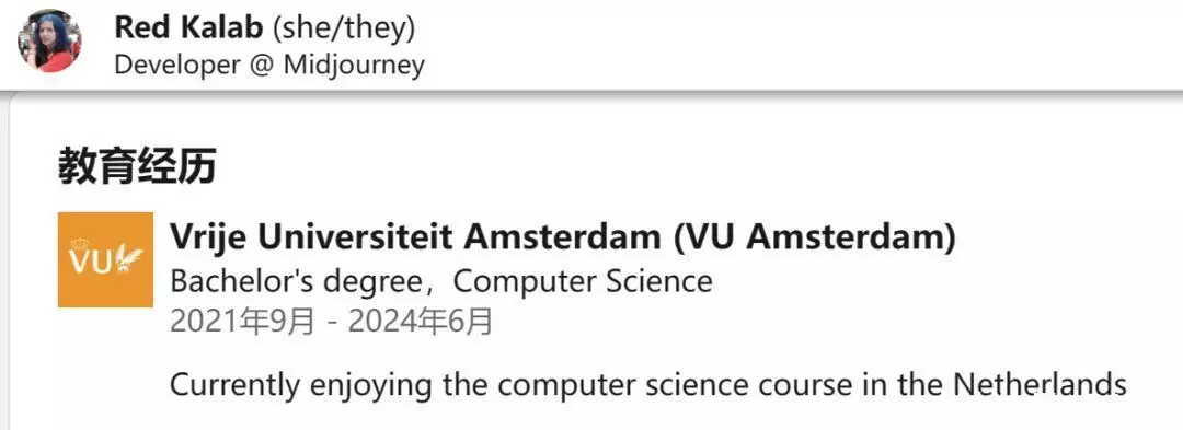 ▶ Red Kalab,目前就读于阿姆斯特丹自由大学计算机科学专业,2024 年 6 月才毕业。