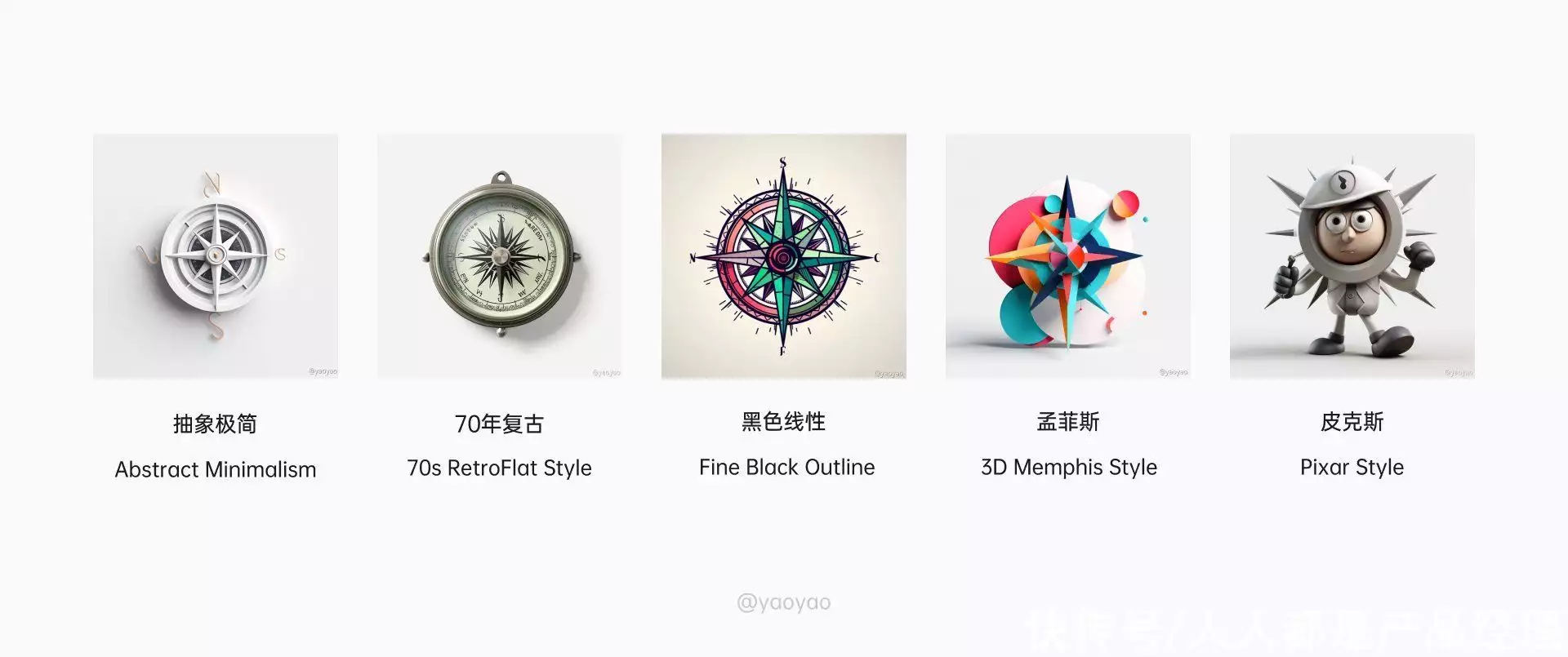 尝试不同的风格,用指南针举例子。可以尝试替换里面的风格关键词。