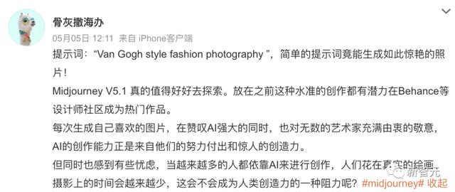 有网友在Midjourney中给出了如下的提示词:「梵高风」时尚摄影。