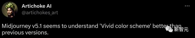 还有网友发现,Midjourney V5.1似乎比以前的版本更能理解「鲜艳亮丽的色彩」。