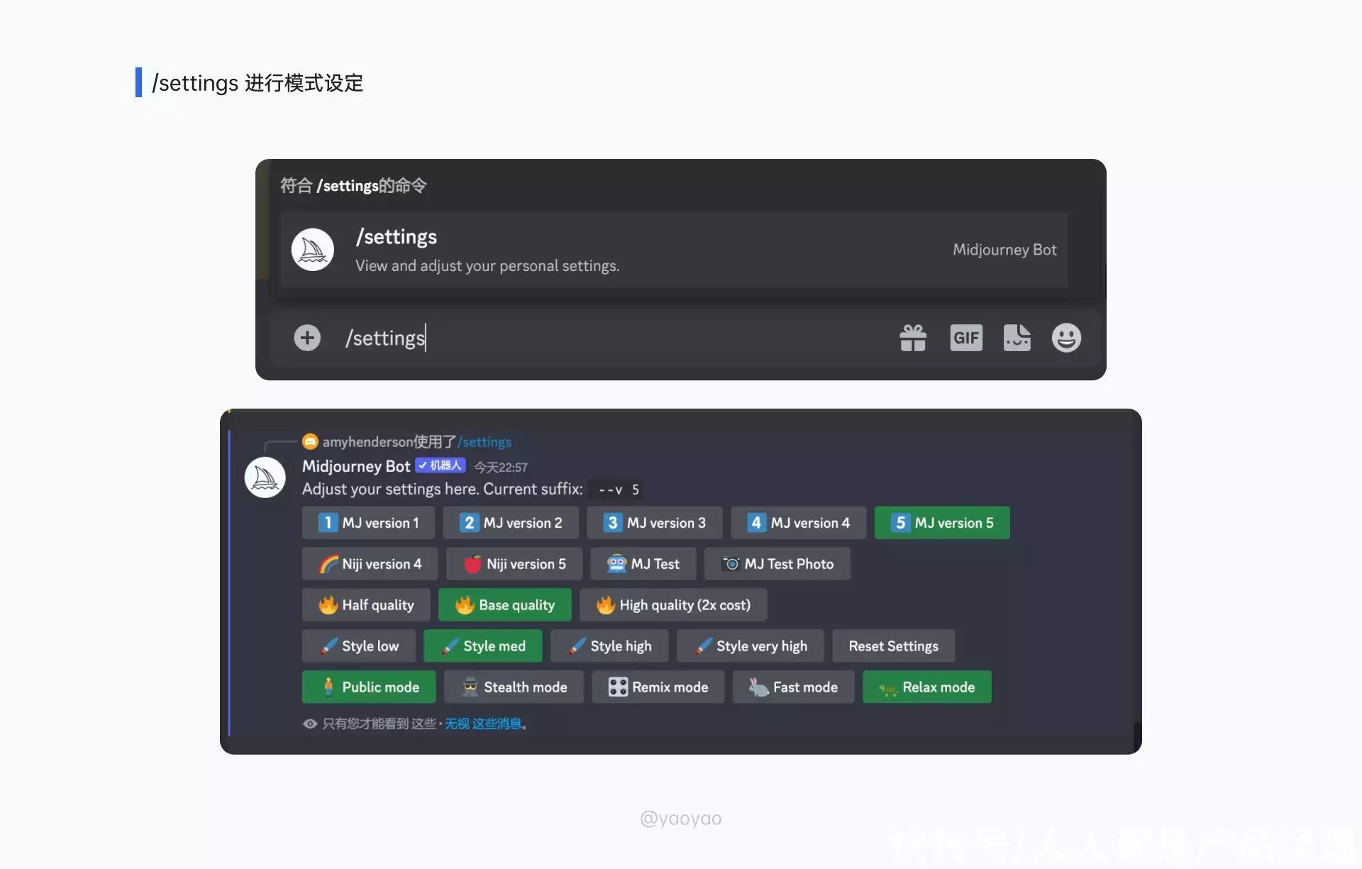 Public mode是公开模式,所有人都可以看到你生成的Stealth mode是隐私模式,只有自己可以看到Remix mode是混音模式,可以局部风格进行调整Fast mode是快速模式,即可以快速出图Relax mode是放松模式,出图较慢
