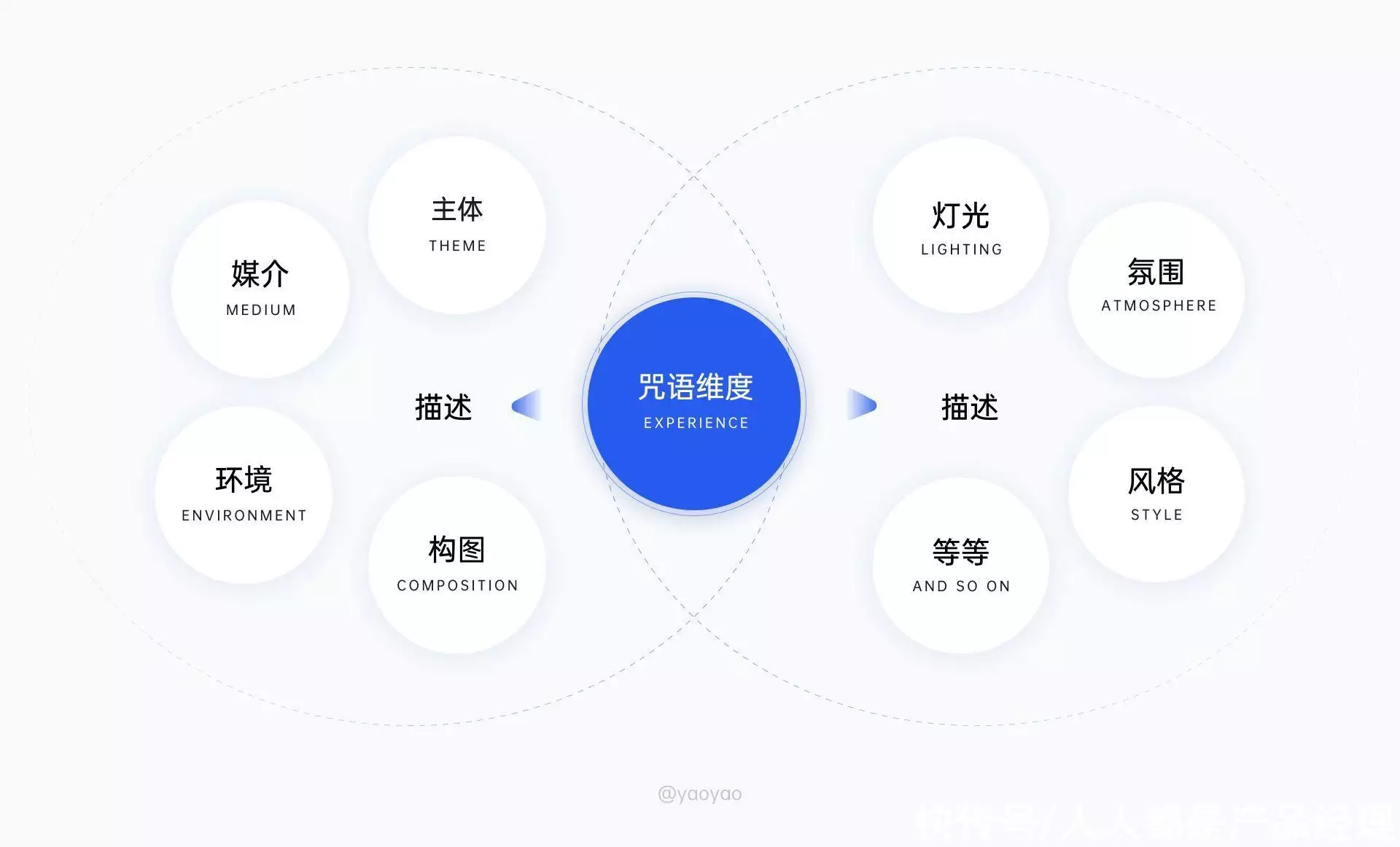 9.2 提示词大全整体的关键词条我们大致的分为:主体、媒介、环境、构图、灯光、氛围、风格、材质、后缀等做输入来控制我们的画面结果。