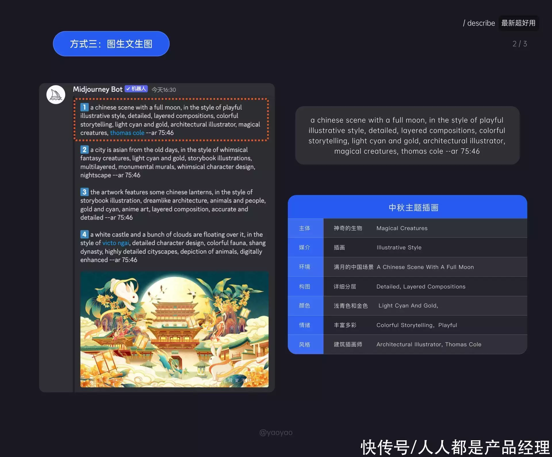 接下来根据「 中秋主题插画 」为项目背景,分别运用midjourney三种主要生成图片的方式去讲解。