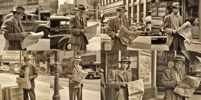 两个版本都未能准确理解提示词的含义,所生成的场景均呈现出一名持有报纸的推销员,而非真正售卖报纸的角色,这方面的修正可以通过调整提示词来实现。在两组图片中,背景均存在文字元素,但彼此间并无显著差异。从整体来看,两组图片中的文字尚可,然而,一旦放大观察,便会发现其中大部分文字并无实际意义。相较于5.1版本,其图片构图更为紧密,主题在画面中所占空间也相对较大。