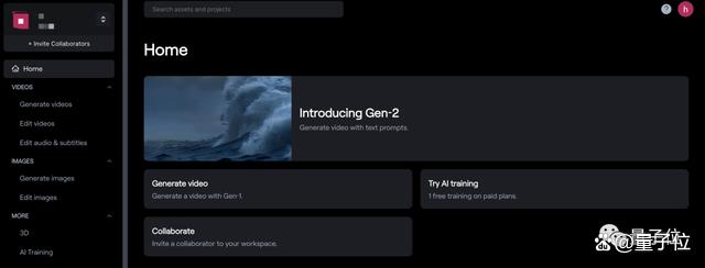 以网页端为例,进入Runway官方主页(文末链接[1]),点击上方“TRY NOW”并注册账号,就可以进入下面的界面: