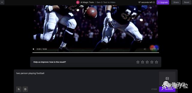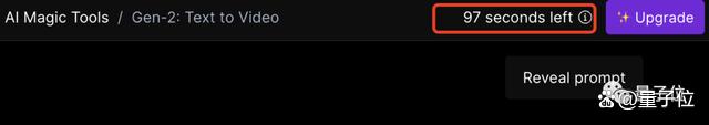 需要注意的是,免费试用的额度为105秒(右上角显示剩余额度),每个视频为4秒,也就是大约可免费生成26个Gen2视频。