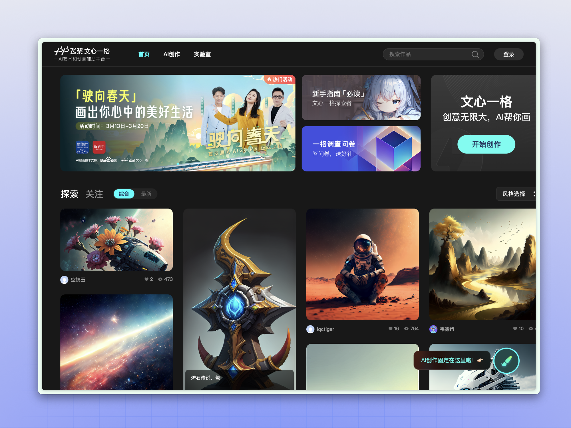 另外,我们也可以在官网展示页中看到其他人实时发布和精选的作品,提示词都是公开的,不管在社区还是官网展示页,你都可以学习到别人的提示词并运用到自己的创作里。