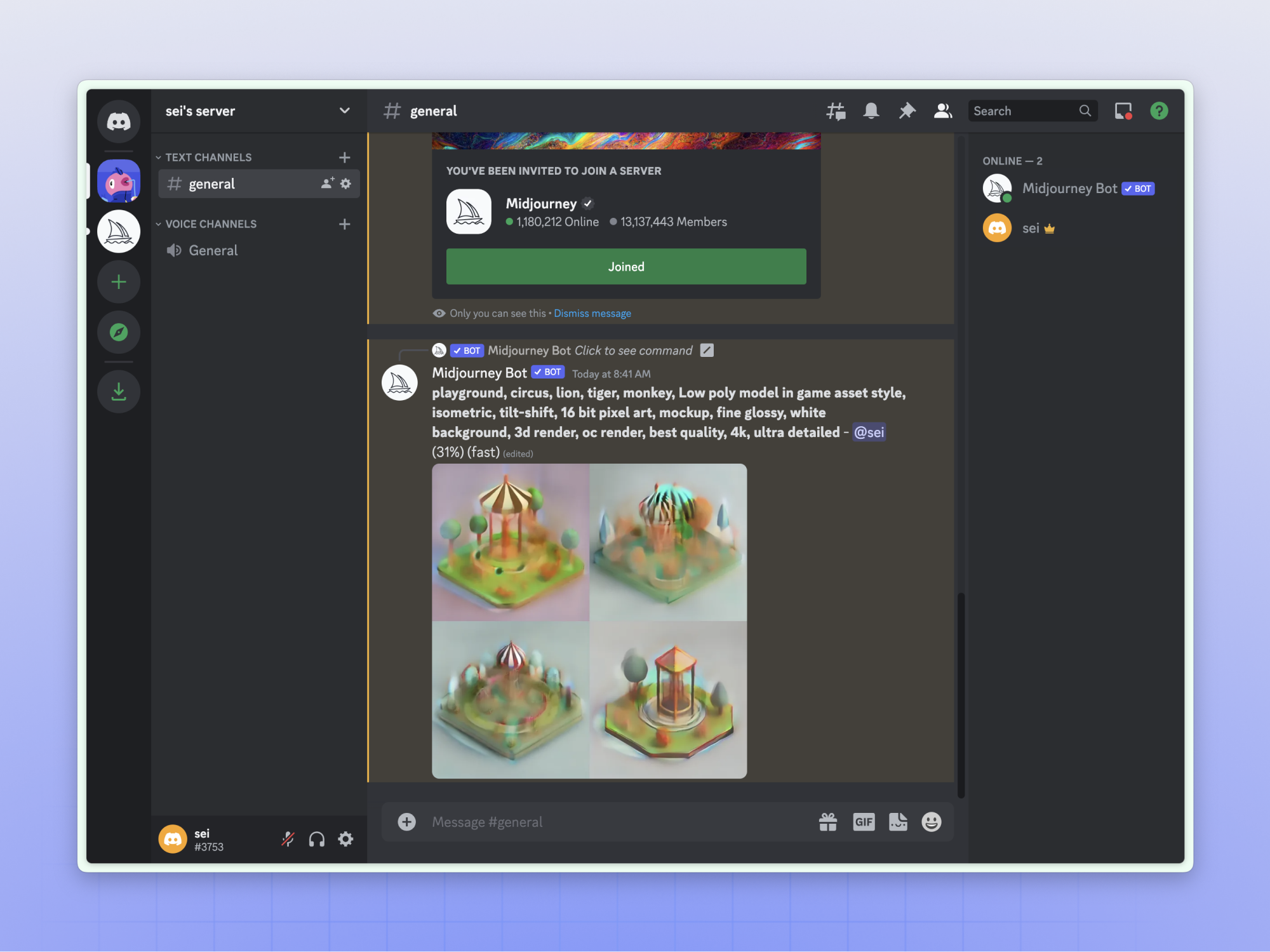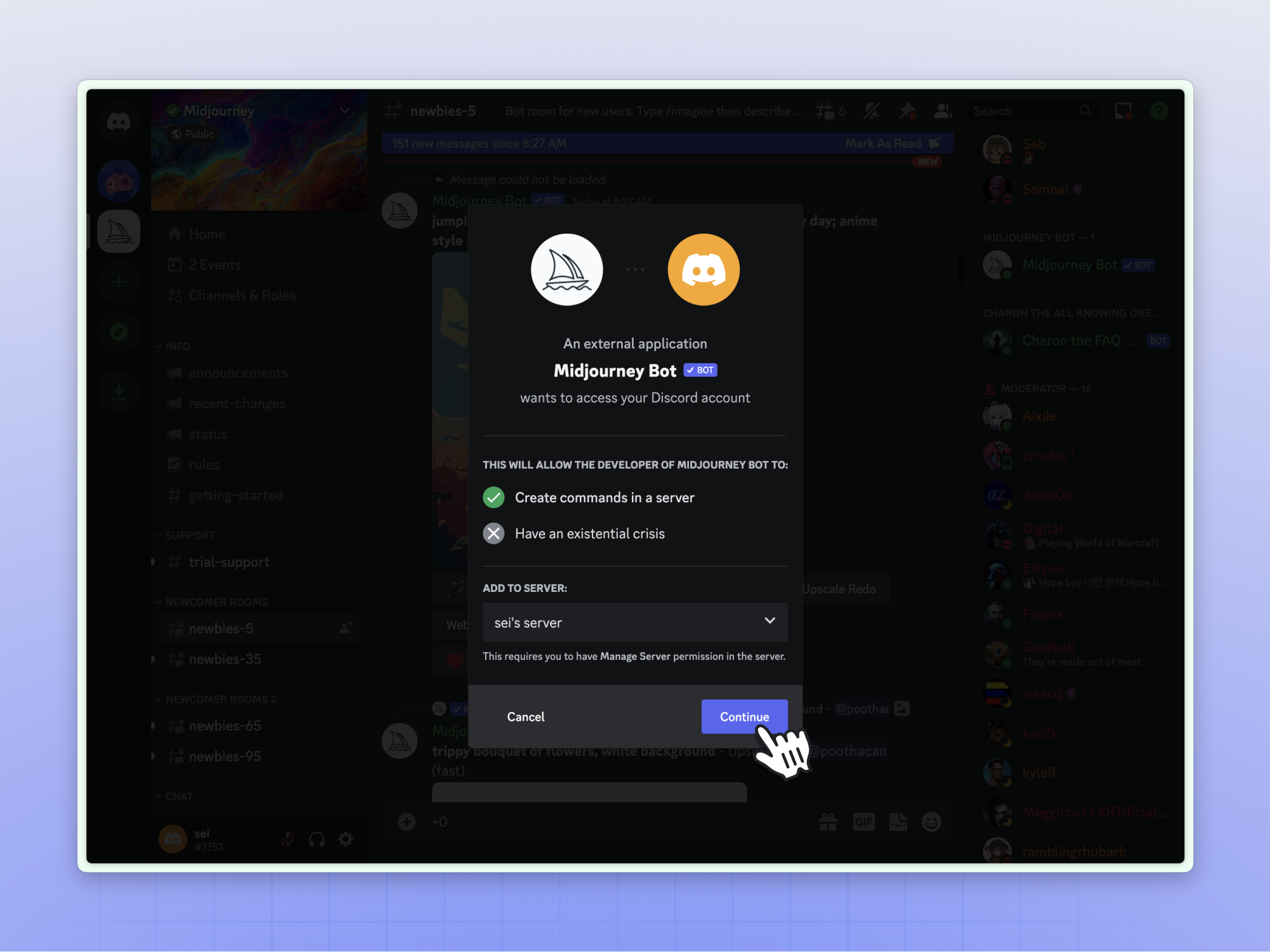 邀请 MJ 机器人入驻个人服务器