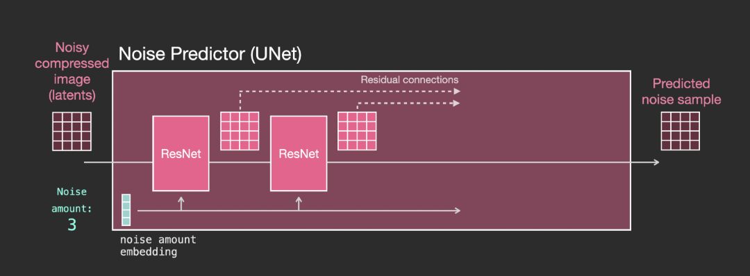 经过训练的噪声预测器可以对一幅添加噪声的图像进行去噪,也可以预测添加的噪声量。