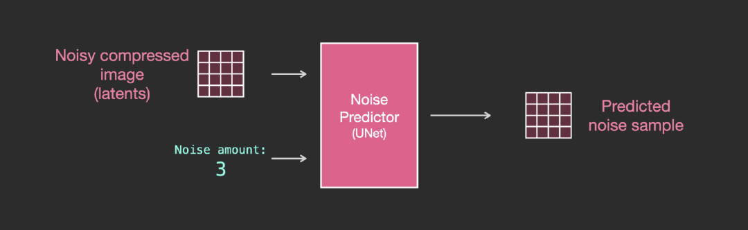 前向扩散(forward diffusion)过程是在压缩latents完成的,噪声的切片(slices)是应用于latents上的噪声,而非像素图像,所以噪声预测器实际上是被训练用来预测压缩表示(潜空间)中的噪声。