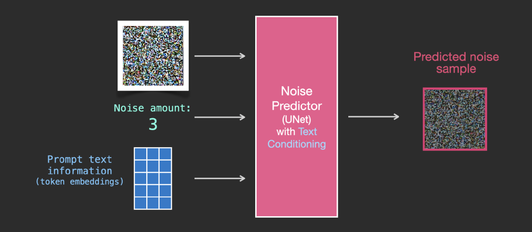 基于上述数据集,我们就可以训练出一个性能极佳的噪声预测器,每个训练step和其他模型的训练相似。当以某一种确定的配置运行时,噪声预测器就可以生成图像。