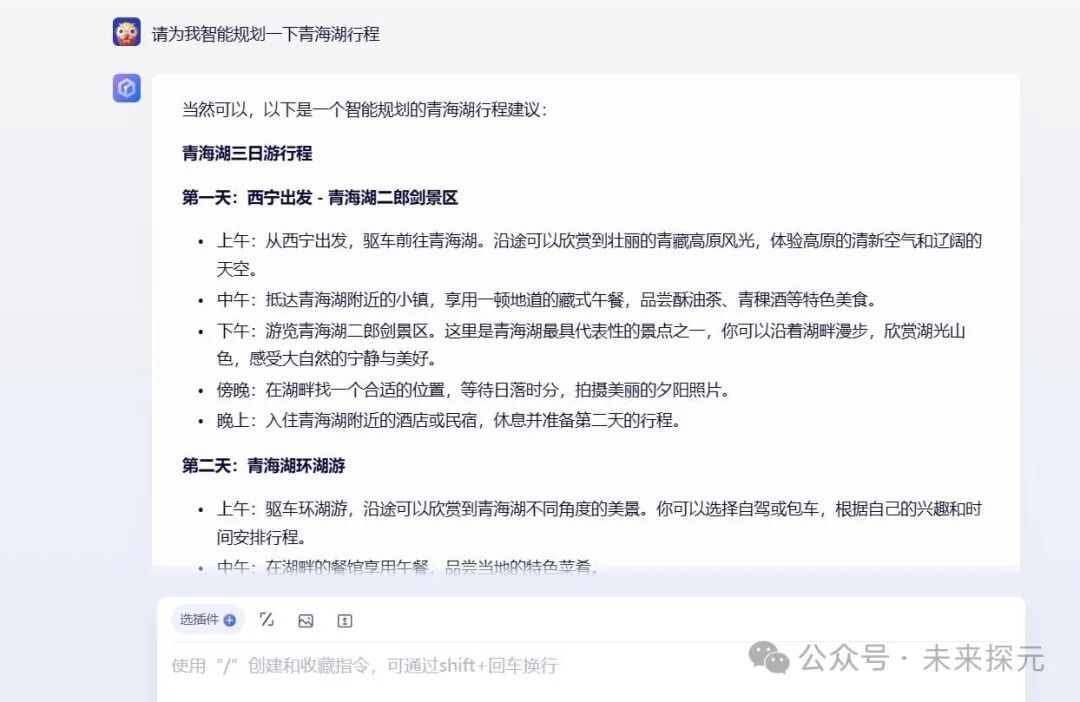 除了个性化的旅游建议,文心一言APP还能根据用户的偏好智能规划行程。这一功能不仅考虑了景点的热门程度和地理位置,还结合了用户的停留时间、交通方式等实际因素,为用户提供了高效、合理的行程安排。