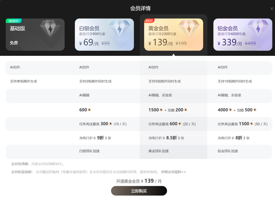 🌟了解需求,开始改写🌟对于寻求性价比的读者朋友们,白银会员无疑是个不错的选择,只需68元每月的小费,它提供的服务与免费版并无太大出入。若想升级,中间党可考虑黄金会员,月度价格为139元,电力值翻倍,相较于白银,性价比显著提升。而铂金会员则是顶级享受,电力值更是白银的5倍之多,绝对物超所值! 若要了解更多详情,记得关注我们,获取更多会员福利和优化建议,让您的阅读体验更加丰富多彩!😊