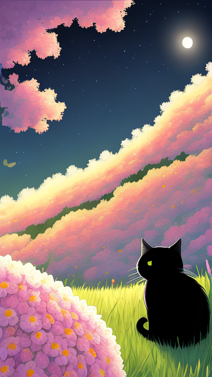 文章主题:AI绘画, 夜空, 猫, 插画风格