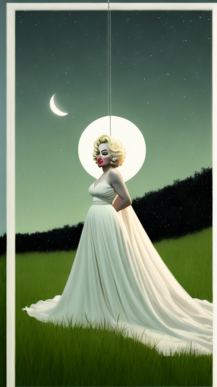 ✨夜晚的深邃,月光皎洁,玛丽莲·梦露如仙子般轻盈地倚躺在翠绿的草坪上,身着薄纱的她仿佛融入了这静谧的画卷。🌿✨#月亮下的女神 #梦露之魅 #夜色浪漫 🌃