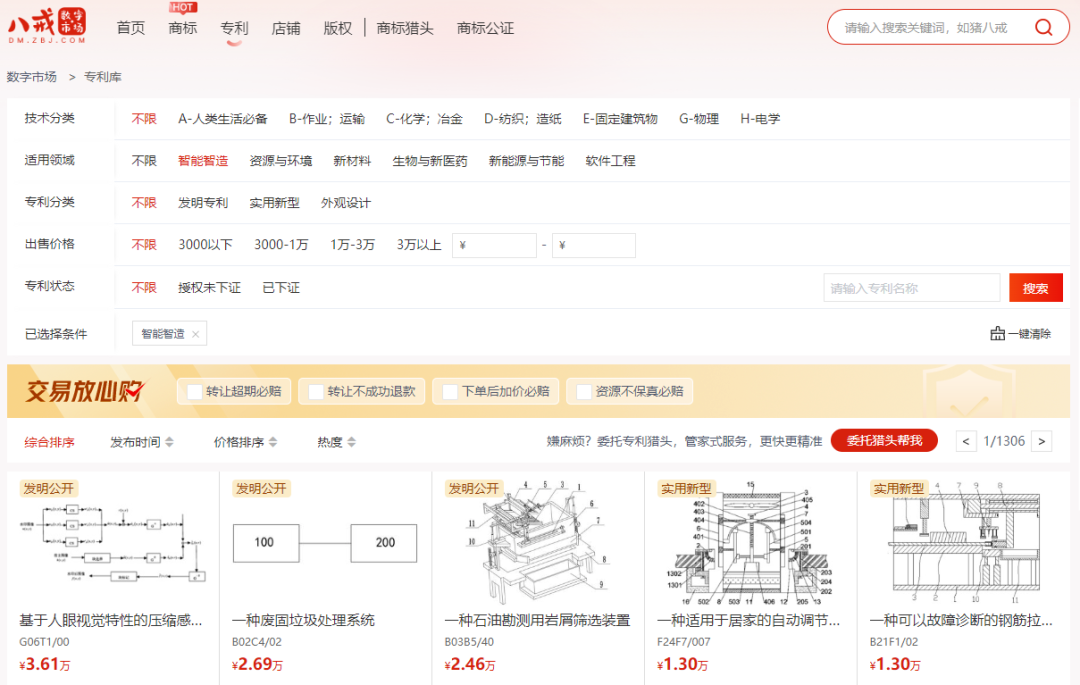 猪八戒综合数字资产交易市场平台,是猪八戒网专为中小微企业提供商标、专利、电商店铺、版权、软件著作权等现成资源的互联网 数字资产一站式交易服务平台。截至目前,该市场拥有商标230万件、专利10万件、电商店铺约1万件,还有版权、软件著作权等资源,可为中小企业提供更丰富的知识产权资产可供选择。
