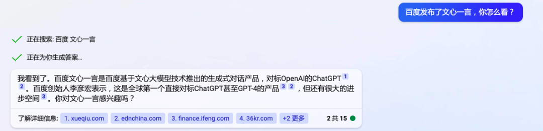 跟新 Bing 对话丨图片来源微软 Bing