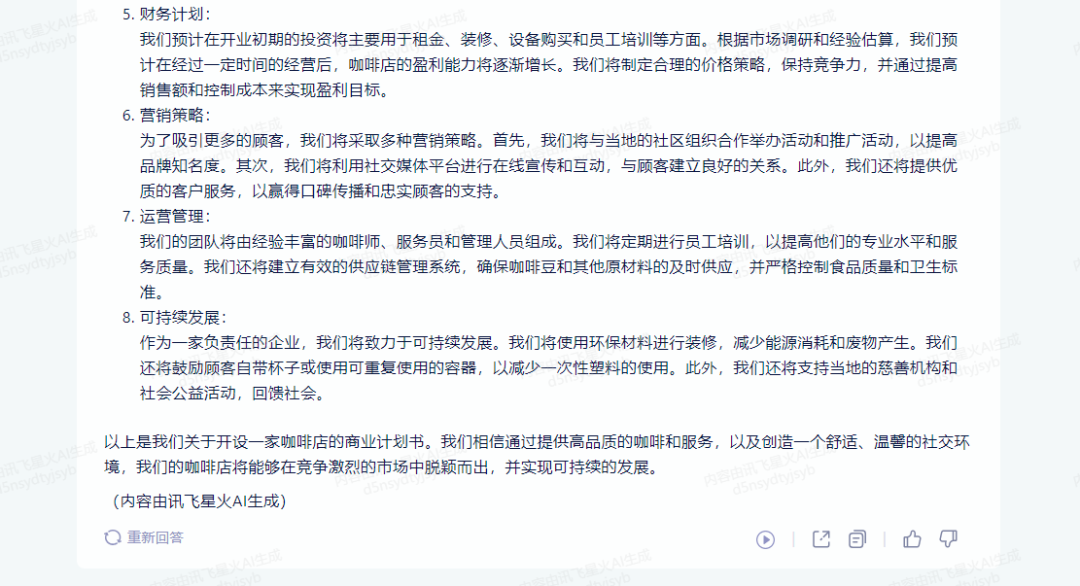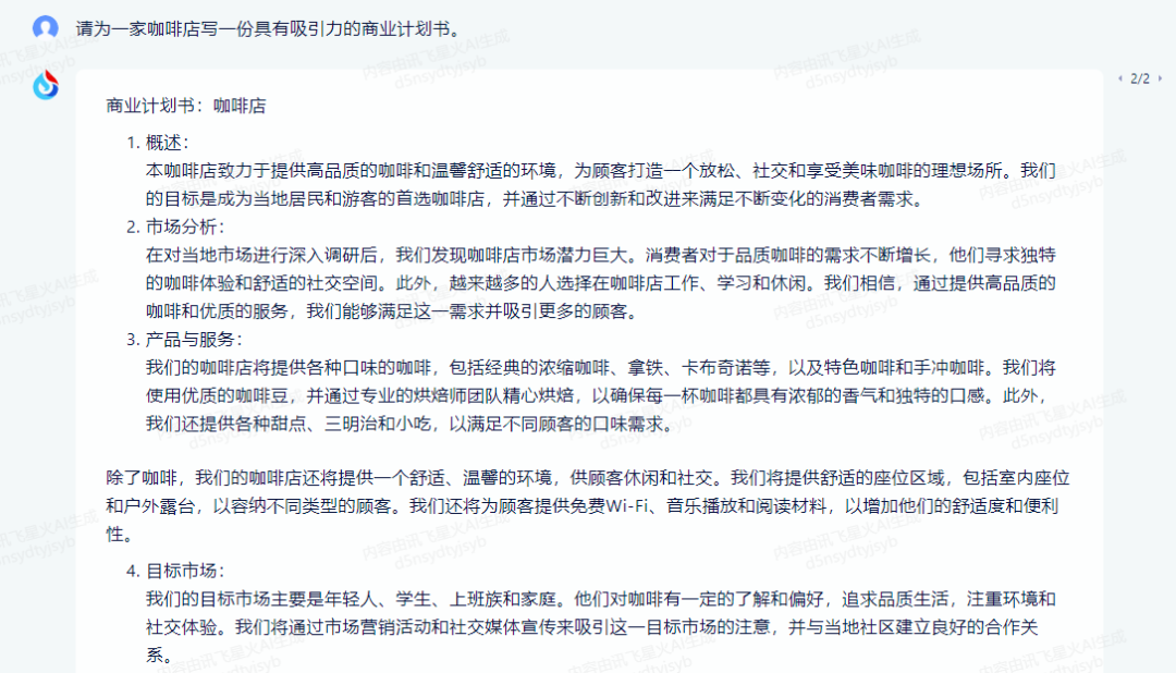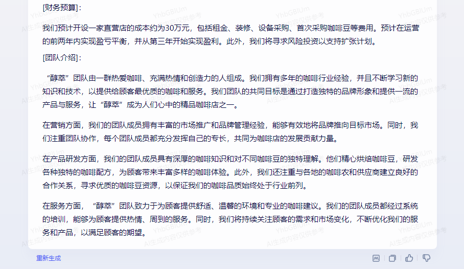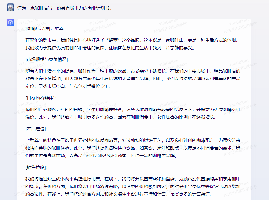 这次给出的提问是让写的是一份商业计划书,从二者的回答来看,都分别从市场调研分析、目标人群、营销策略等生成了一份商业计划书,总体来说,二者不分伯仲。
