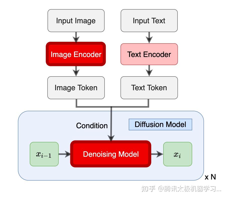 业务应用上,我们的太极-文生图大模型在微信表情、QQ超秀、游戏原图生成领域做了一些探索。在表情领域,我们用一张原始表情+文字生成衍生表情,用图片和描述同时输入,然后在扩散过程中同时加入到其attention中,所用的结构如下所示: