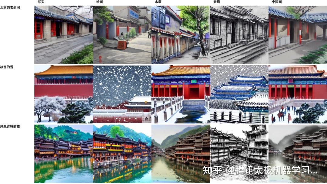 各种中国风景的写实、绘画、水彩、素描、中国画等风格的生成效果