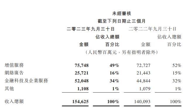 腾讯控股表示,金融科技服务收入维持双位数同比增长,得益于商业支付活动增加和理财服务收入增长。企业服务收入同比实现更快的同比增长,得益于在前期进行的云服务业务结构优化,以及视频号带货技术服务费增加。