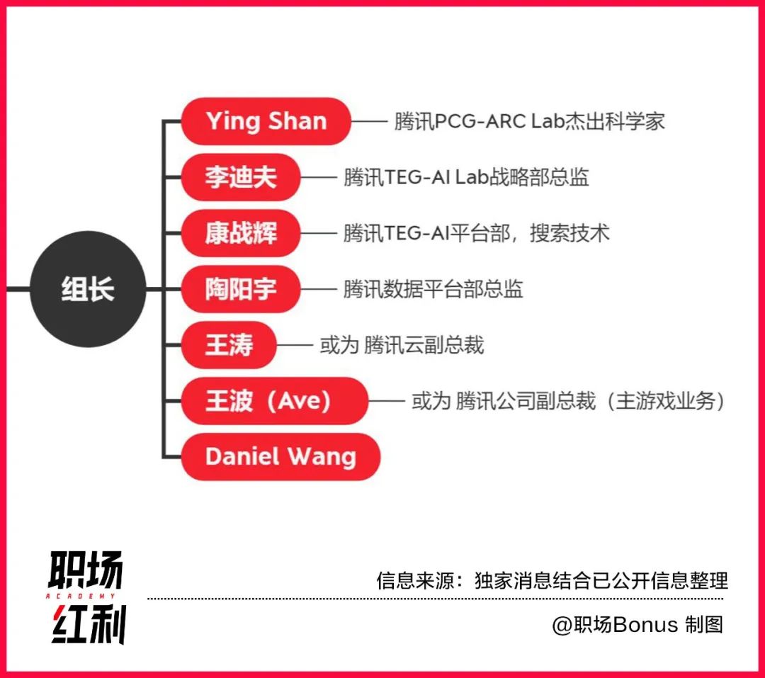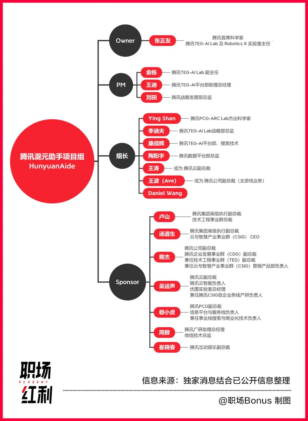 从组长的构成来看,「混元助手」项目的确做到了凝聚腾讯内部多个团队的能力。