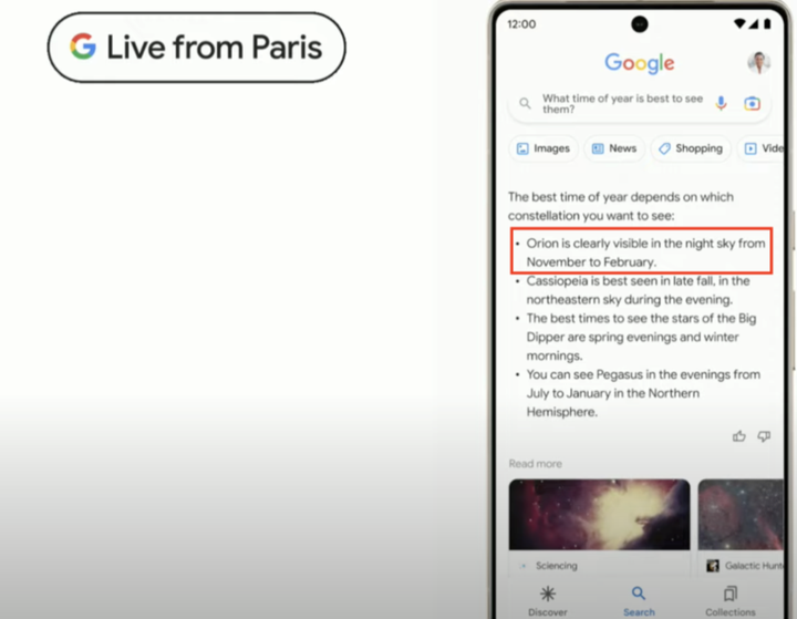 ✨在巴黎盛大的新品发布会上,尽管科技巨头Bard的亮相仅短短4分钟,但其中一项引人关注的细节却引发了争议——关于星座最佳观测时间的回答。👀令人惊讶的是,Bard给出的猎户座观测窗口被错误地定在了11月至2月,这一时间表述显然与实际观测季节存在偏差。🔍修正后的表述如下:🚀巴黎发布会聚焦科技魅力,尽管短暂的4分钟展示中,Bard关于星座观测时间的解答引起了关注。然而,这个科学话题并未完美呈现——其提及的猎户座最佳观赏期出现了误导。🌟众所周知,正确的时段应为秋季至初冬,而非冬季。这一小错误在SEO优化的角度来看,无疑是需要调整和澄清的,以确保信息的准确性对天文爱好者和搜索引擎友好。