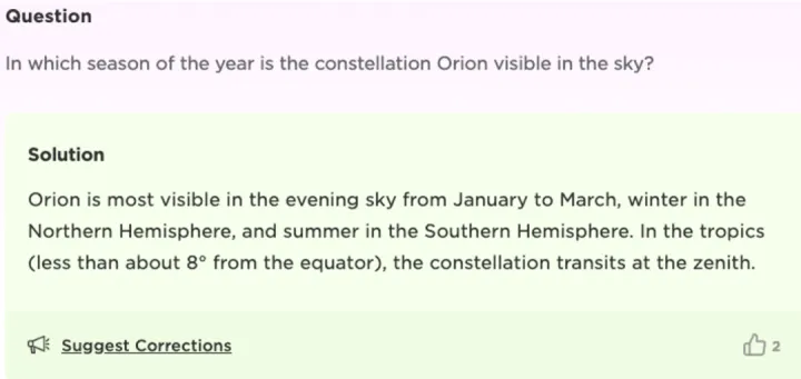 图 3 BYJU‘S 关于猎户座最佳观测时间的解答