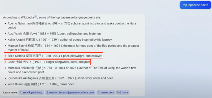 图 4 New Bing 演示中日本诗人例子截图
