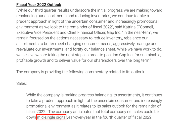 图 6 Gap 2022 年第三季度财报截图