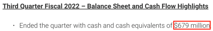 在右侧 New Bing 给出的表格中,除了上文所说的 Gap 营业毛利 5.9% 应为 4.6%(或调整后 3.9%)和 Gap 摊薄每股收益 0.42 美元应为 0.77 美元(或调整后 0.71 美元), New Bing 又给出了 Gap 现金和现金等价物为 14 亿美元的数据,而实际上财报中是 6.79 亿美元。