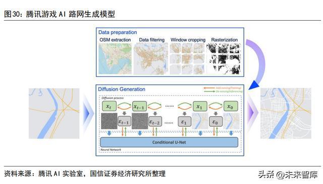 游戏业务:腾讯近日提出基于 AI Bot 与 AIGC 两大方向的自研 3D 虚拟场景自动 生成解决方案,帮助游戏开发者以更低成本创造风格多样、贴近现实的虚拟城市, 大幅提升 3D 虚拟场景的生产效率。以 3D 虚拟城市道路布局设计为例,现有技术 生成的路网通常横平竖直、风格单一,要实现不同城市风格必须手动设计和反复修改,耗时至少一周。腾讯解决方案只需用户输入城市主干道和海岸线,模型 1 分钟内即可填充合理、多样的路网细节并支持微调操作,相比现有技术下效率提 升近 100 倍。