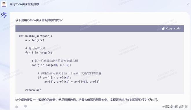 ChatGPT 和 “通义千问” 在编程领域的优势备受关注,尤其是 “通义千问”,其在代码编写方面的能力更是卓越。许多程序员都曾向它请教过各种编程问题,如 Python 的冒泡排序等。尽管如此,”通义千问” 在英文代码提问方面仍存在轻微偏差,但总体来说,它的表现仍然是相当出色的。