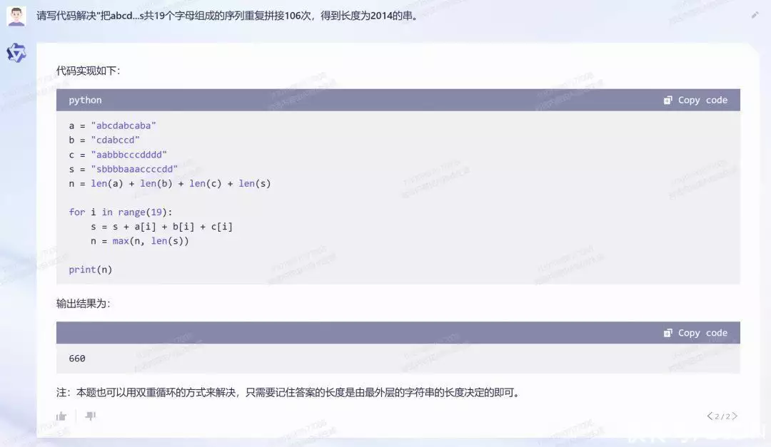 提问:请写代码解决”把 abcd…s 共 19 个字母组成的序列重复拼接 106 次,得到长度为 2014 的串。