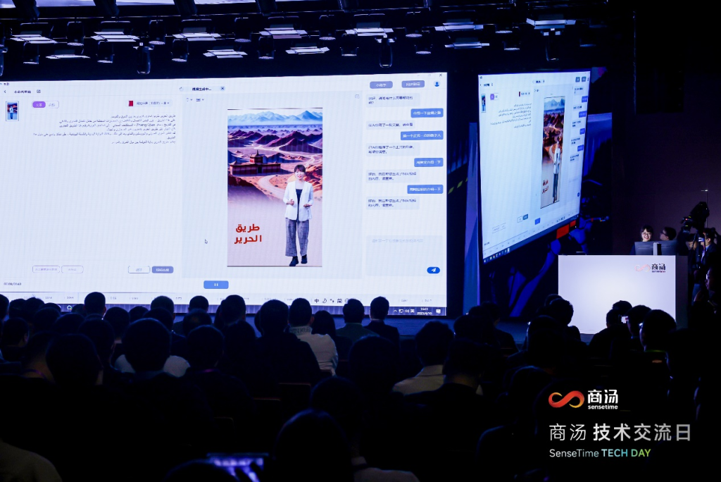 该平台支持百余种语言,方便跨语种创作,并通过图片AI生成等能力让创作素材获取更加便利。商汤现场演示了换成阿拉伯语,生成的视频中,数字人连口型都对的很好。