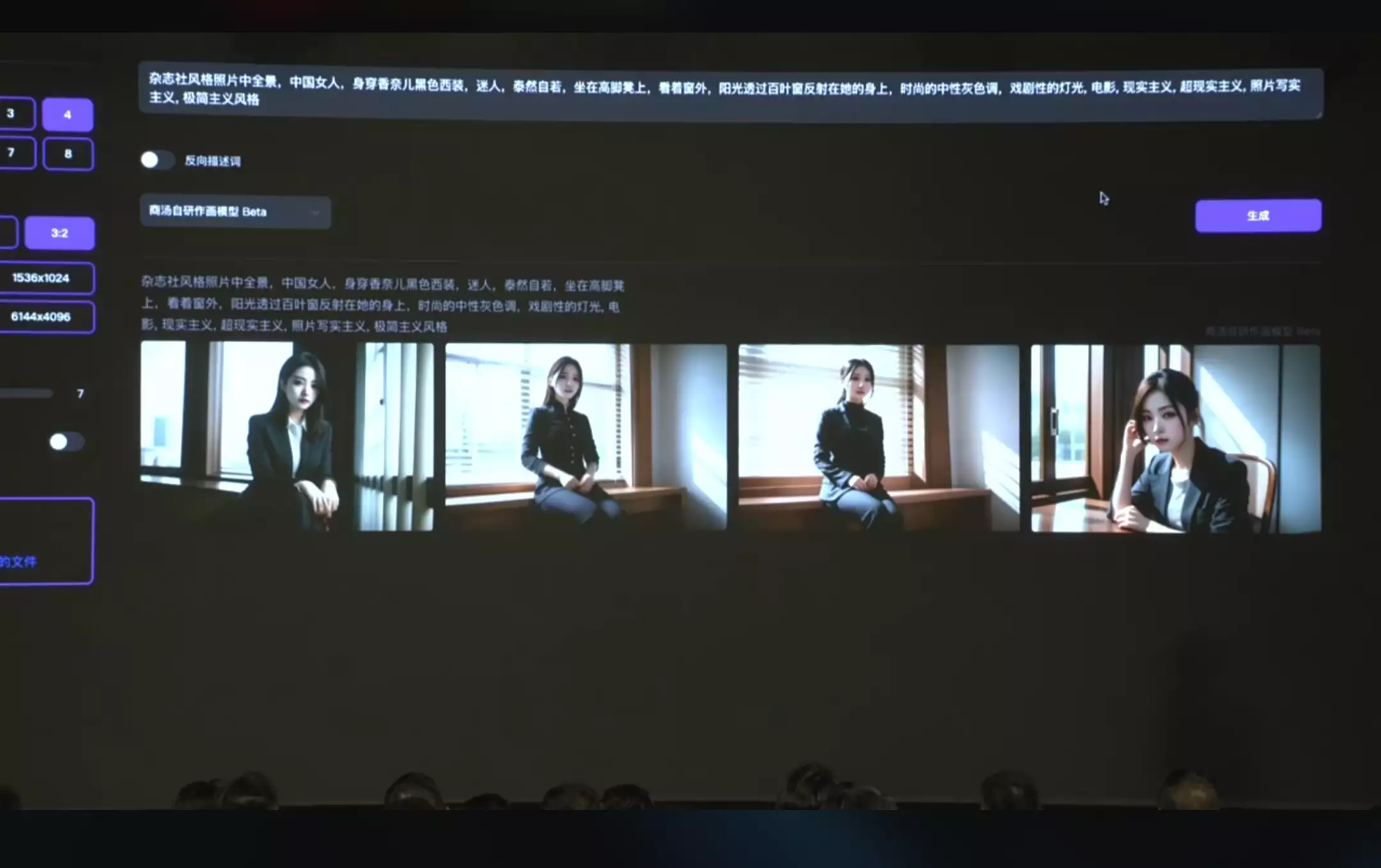 在现场演示中,“秒画”通过被“投喂”的提示词生成了效果逼真、光影协调的中国女性写实图片。