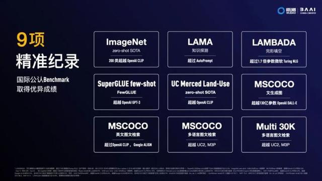 在国际公认的9项的机器学习任务“跑分”项目上,【悟道2.0】都取得了优异成绩,超过了 GPT-3、Google ALIGN 等领域内同类技术。