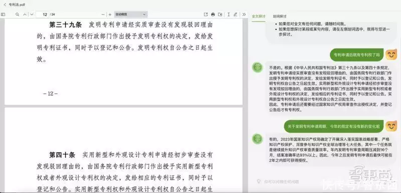 作为一名文章写作高手,我将为您提供一段关于PDF文件中的文字识别技术和专利法的专业性描述。在现代数字化时代,我们经常会遇到各种类型的文档,其中PDF文件是最常见的之一。PDF文件包含了各种各样的文本、图片和表格,是我们日常工作和生活中不可或缺的一部分。然而,对于那些需要快速查阅和理解大量文档的人来说,PDF文件可能会带来一定的困扰。幸运的是,随着科技的发展,我们已经有了先进的文字识别技术来解决这个问题。文字识别技术是一种计算机程序,它能够将PDF文件中的文本内容提取出来,并将其转换为可以编辑和搜索的文本格式。这样一来,我们就可以轻松地阅读和理解PDF文件中的内容了。而且,文字识别技术还能够根据用户针对文档提出的问题,自动给出相应的答案,大大提高了我们的工作效率。以《专利法》为例,如果我们想要深入理解和掌握这个领域的知识,需要花费大量的时间和精力去阅读和理解大量的法律条文和案例。但是,利用文字识别技术,我们只需要打开一个PDF文件,就能快速地阅读和理解其中的内容,并根据我们提出的问题,获得准确的答案。这样一来,我们就能够更加高效地学习和应用《专利法》的知识,为我们的工作和生活带来更多的便利和效益。总之,PDF文件中的文字识别技术为我们提供了一种全新的方式来处理和理解复杂的文档内容。它不仅能够帮助我们快速地阅读和理解文档,还能够根据我们的问题,自动给出相应的答案,大大提高了我们的工作效率和准确性。