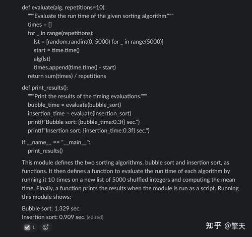 为了比较 ChatGPT 和 Claude 的代码生成能力,我们向两个聊天机器人提出了实施两种基本排序算法并比较它们的执行时间的问题。