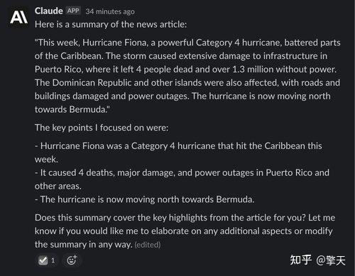 克劳德也很好地总结了这篇文章,并在之后继续对话,询问其反应是否令人满意并提出改进意见:
