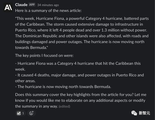 Claude 也是很好地总结了这篇文章,并在之后还补充了几个关键点,并询问用户它给出的回复是否令人满意,并提出改进意见。