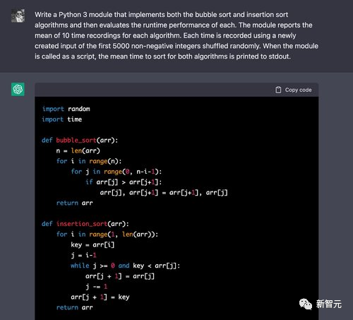 可以看到ChatGPT 可以很容易地为冒泡排序编写出正确的算法,但这个在网上教程中也比较常见,回答正确也不奇怪。