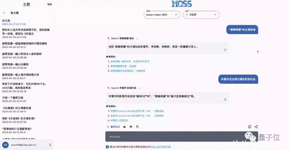 MOSS取自于《流浪地球》里面那个拥有自我意识的AI。