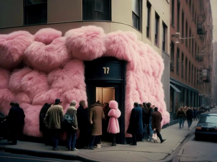这两年,一些优秀数字艺术家的作品备受关注,像是设计师 Andrés Reisinger 这组名为 「Take Over」的作品,让东京、伦敦、纽约、巴黎、罗马、迪拜城市街头的建筑都披上了毛茸茸的粉色外墙。