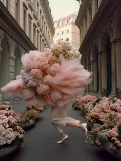 也可以运用到商业大片和海报上,服装品牌的 lookbook 和杂志大片也许无需再请模特飞往世界各地,这组 AI 生成的「米兰街头的狂奔」在时尚摄影的基础上更增添了一些梦幻迷人的奇妙可能。