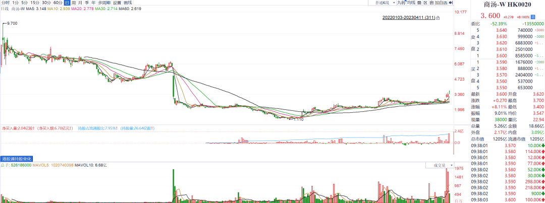 在2023年4月11日早盘,科技公司商汤-W在港股市场上表现亮眼,商汤-W股价一度飙升超过8%,成交额市场领先。从近期表现来看,商汤-W近四个交易日累涨超30%。