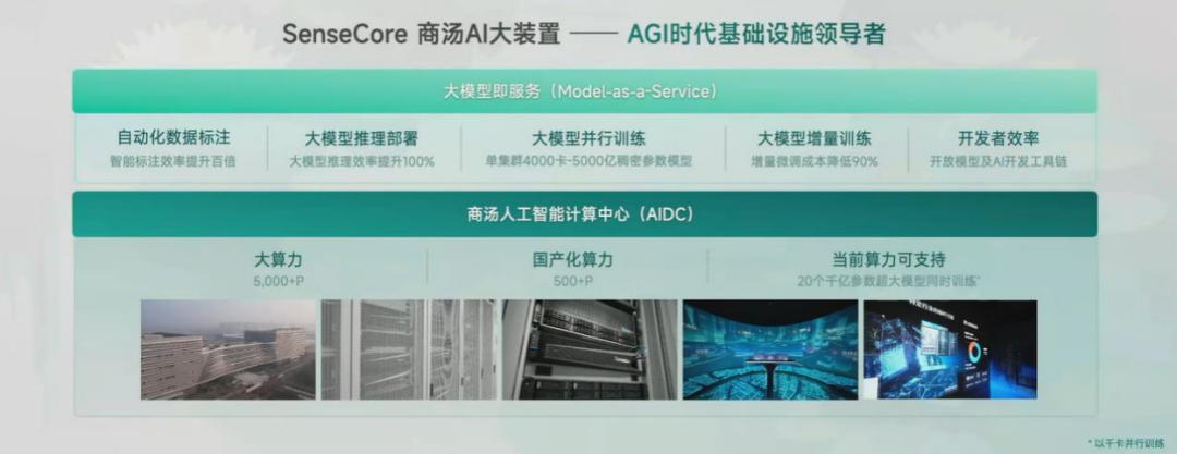 基于商汤AI大装置 SenseCore 和“日日新 SenseNova”大模型体系,商汤面向行业伙伴提供一系列大模型即服务(Modelas-a-Service),包括自动化数据标注、自定义大模型并行训练、模型增量训练、模型推理部署以及开发者效率提升等服务。