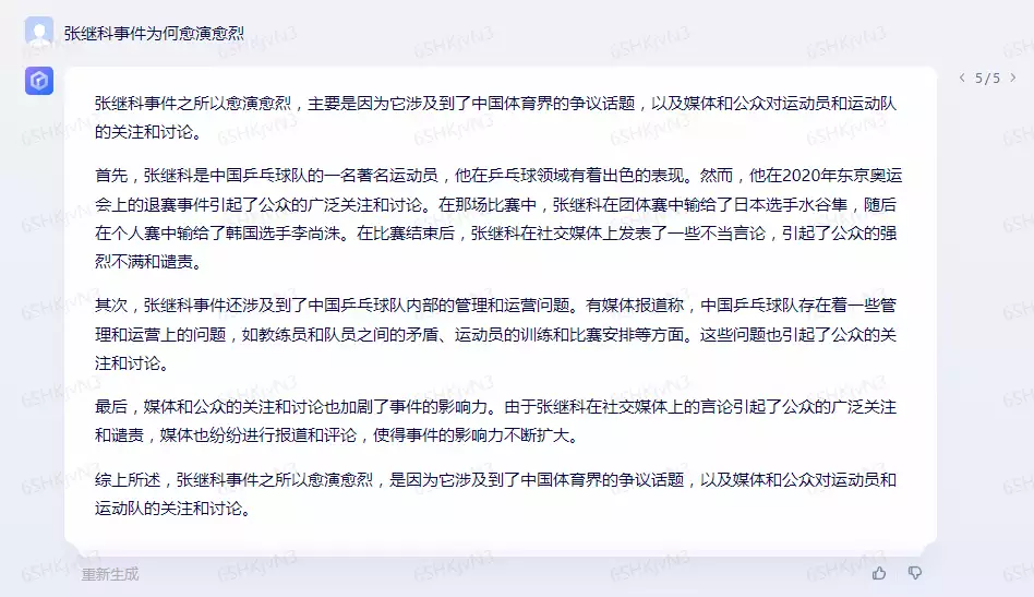 文心一言:张继科事件之所以愈演愈烈,主要是因为它涉及到了中国体育界的争议话题,以及媒体和公众对运动员和运动队的关注和讨论。