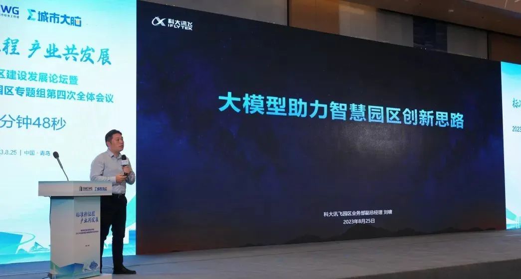 8月25日,“标准新征程 产业共发展”智慧园区高峰论坛在青岛举行,此次论坛齐聚相关主管部门领导、专家学者及企事业单位代表,共话新时期智慧园区的标准化发展。会上发布了“2022年度全国智慧园区案例集”,由科大讯飞助力打造的“三亚崖州湾科技城数字孪生项目”成功入选,科大讯飞园区业务部副总经理刘啸出席领奖,并围绕“大模型助力智慧园区的创新思路”作主题分享,阐述在讯飞星火认知大模型的智慧涌现下,为智慧园区发展带来的技术阶跃和全新机遇。